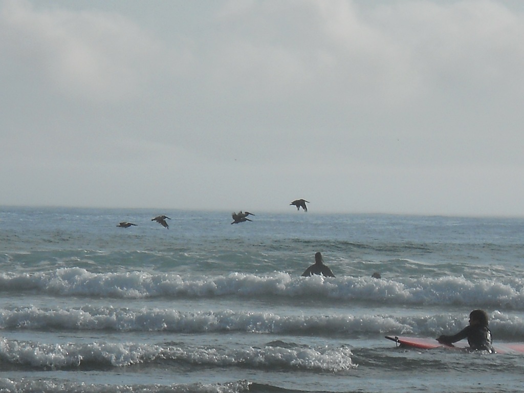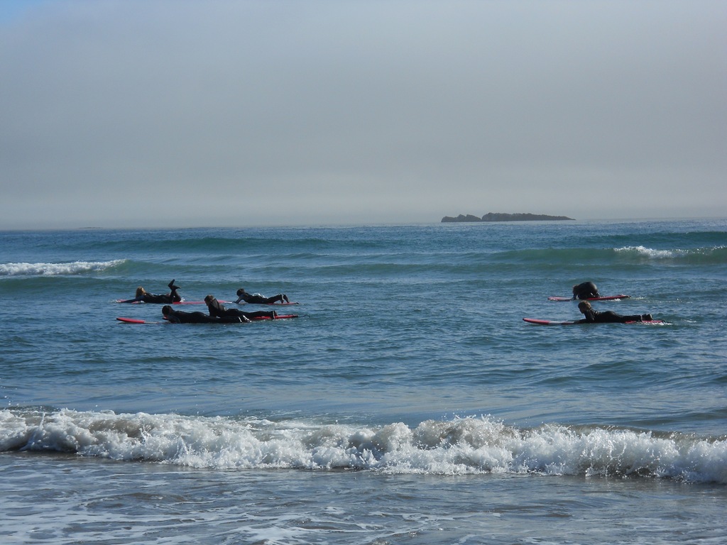 Even though Lincoln City was fogged in, this little cove known as Otter Rock, or the Devil’s Punch Bowl State Park – was Fog Free. Those little red dots by the trees are the kids in the Surf Clinic.