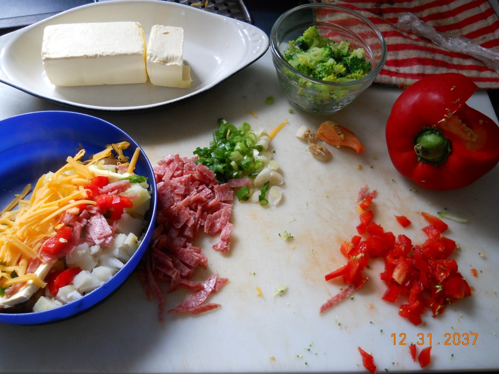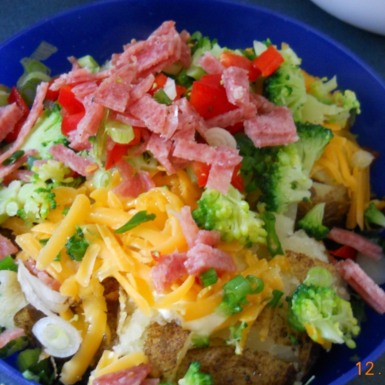 6:00-9:00 – Waiting For Daddy This is always the longest part of the day.  I usually blog about our days, read up on blogs, work on Crew or other Review assignments, get tomorrow’s items ready for school – call a friend, go have coffee. The photos below were from our dinner on the Winter Color Scavenger Hunt – I think for our 2-3 meal though. Colorful Baked Potatoes. Ham, Broccoli, Cheese, Bell Pepper, Green Onions, Butter and Sour Cream. Oh. I just got hungry