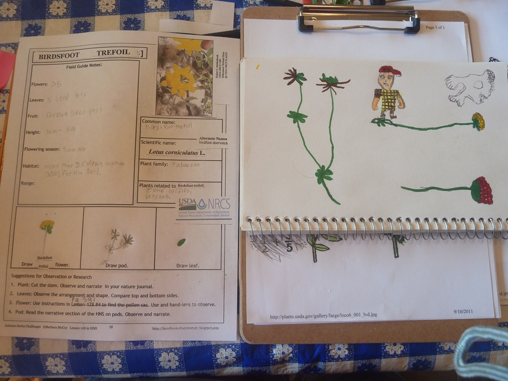 Nate completed the Notebooking Page intended for Middle School and High School Nature Notebooking. I changed the “Milkweed” to Bird’s Foot Trefoil on the page provided by Handbook of Nature Study in their e-book this week.