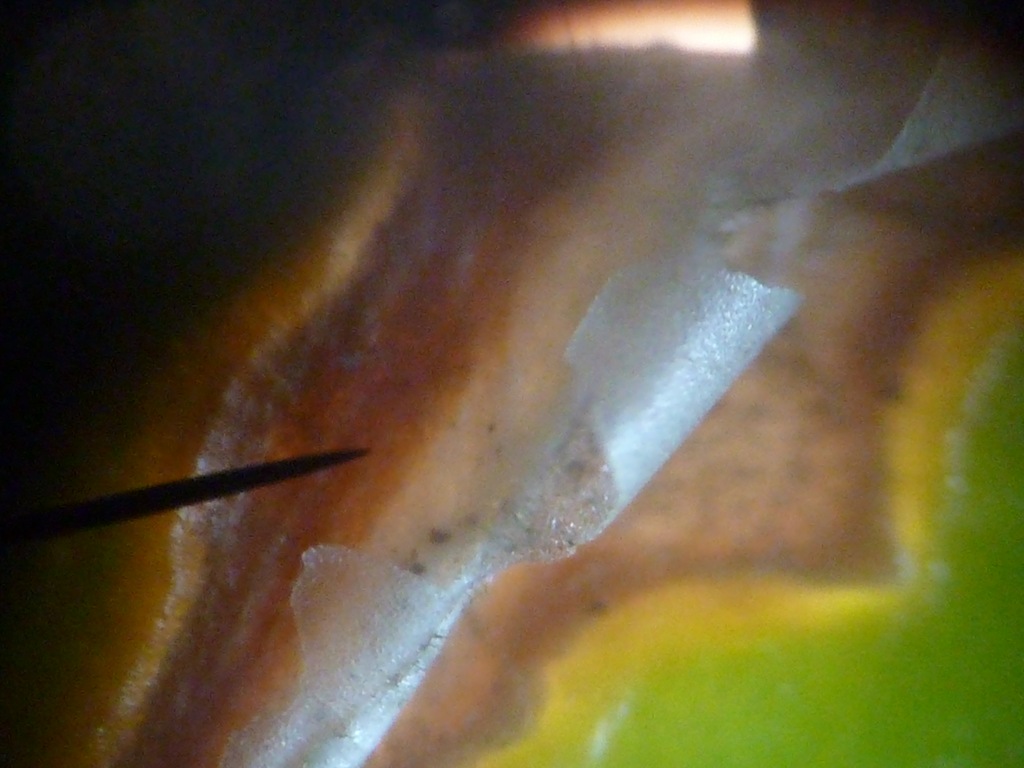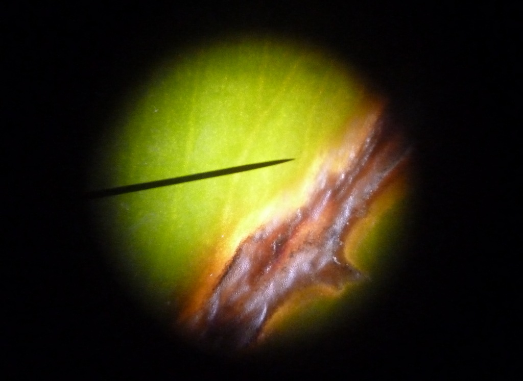 What we found was the ridges lifted up from the tunnels. I couldn’t get a good focus with my camera – but good gravy the cell formations on this tiniest of leaf layer was amazing!