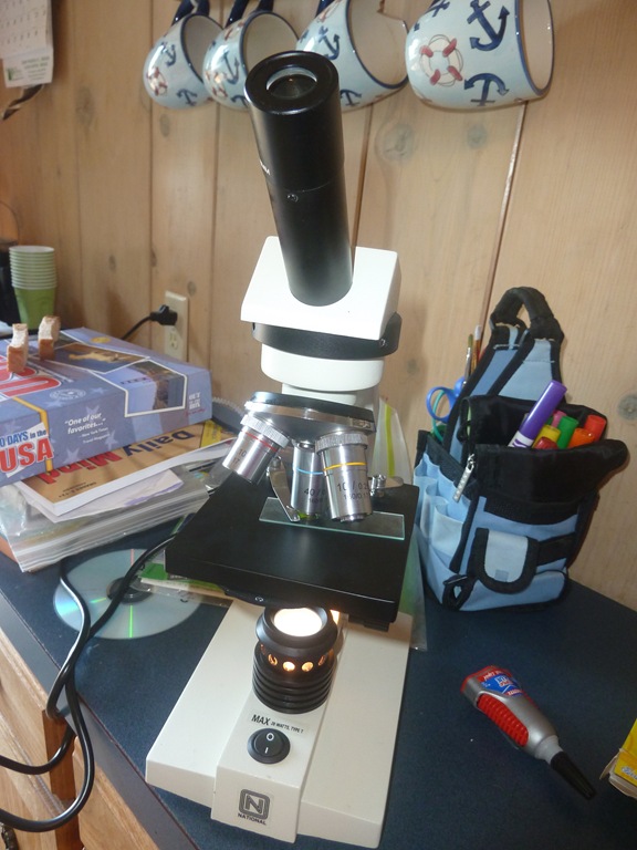 Closest zoom with the camera – you can’t see all of the layers. So cool. The boys got re-acquainted with the microscope learning how to change the focus, the lenses, etc.
