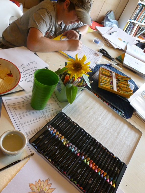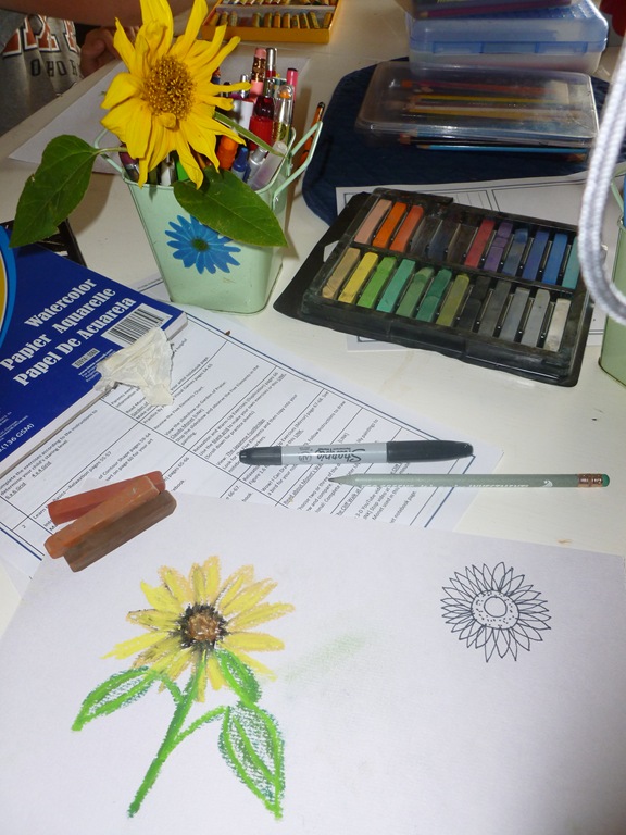 We have enjoyed the combination of studying art and music together from Harmony Art Mom!  This unit is from her Grade 4 package. I look forward to purchasing Grade 7 soon, and have been able to secure Artistic Pursuits to use along with it.  Grade 4 uses Drawing with Children.  Today – we took the liberty of using Option 2 Art Appreciation – and did the pastel option of sunflower drawing.  Option 1 is a Picture study – Option 2 is Art Appreciation with a follow-up activity (the pastels today), and Option 3 has a small lesson portion of the Drawing with Children. Some weeks we have combined all 2 and 3, or a single option.