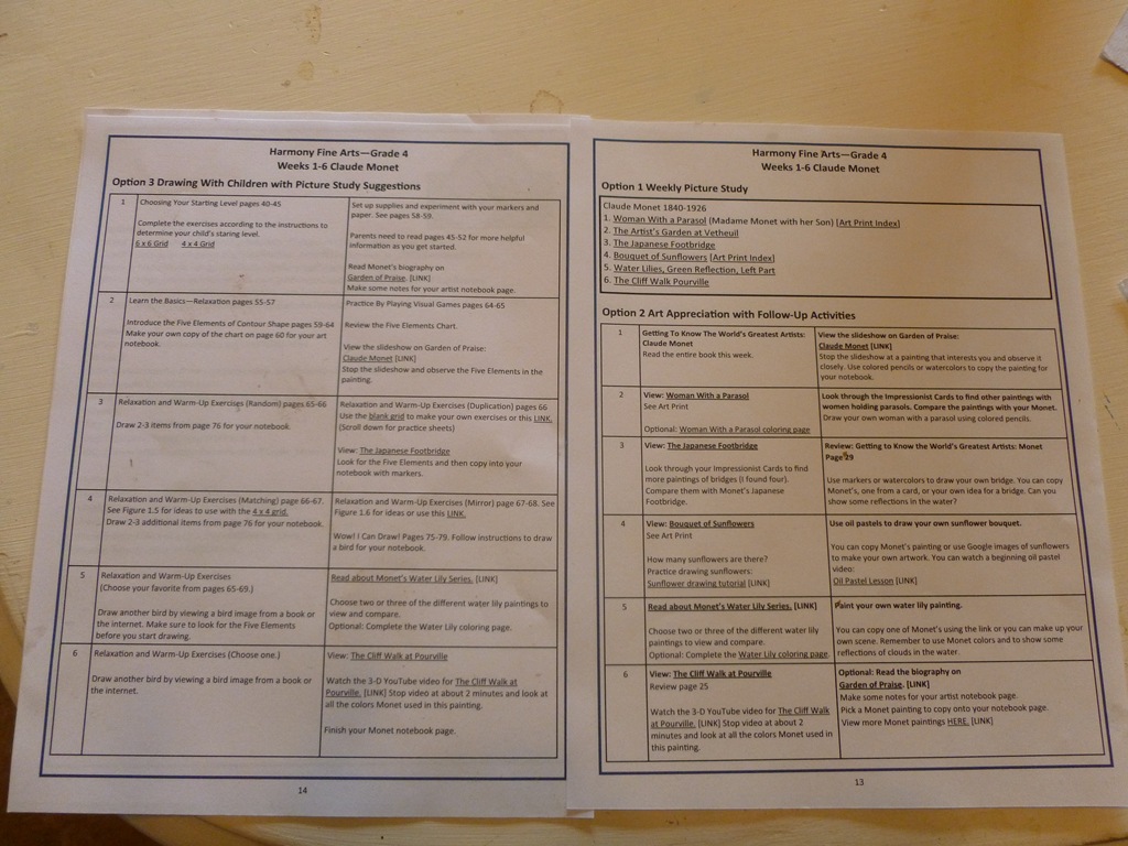Here is a link to her mini – units.  The page also includes one free download – that is available to anyone. http://www.squidoo.com/harmony-fine-arts-mini-units