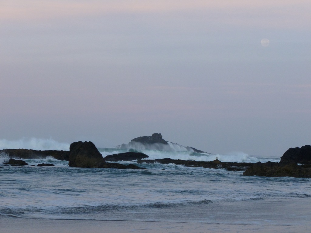 An ocean foggy haze was thick on the horizon, we watched the moon slip behind it.