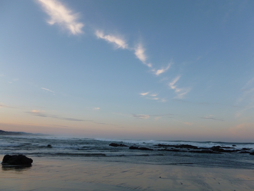 Nate and I geared up and headed out for a morning twilight beach stroll. I have some surf booties that keep my feet warm and allow me to walk through these little creeks. Once the winter storms pick up, they won’t be so peaceful. For this morning – perfection.