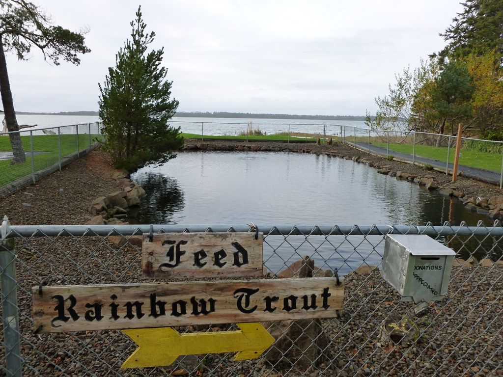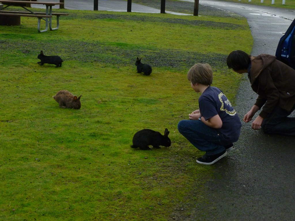Beautifully landscaped park property, found a letterbox, toured the facility, fed the trout. Headed south to Pacific City to feed the bunnies at the RV park.