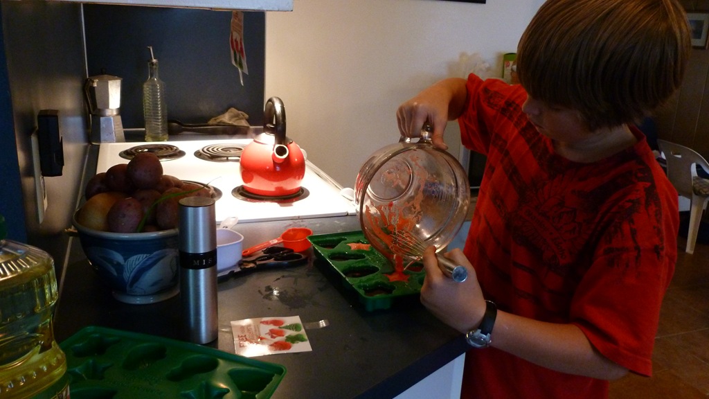 Jon works on a new Jello Jigglers recipe for Turkey Day appitizers. I’ve read that you don’t want to try out a new recipe for company. . . we were happy to eat this batch early.