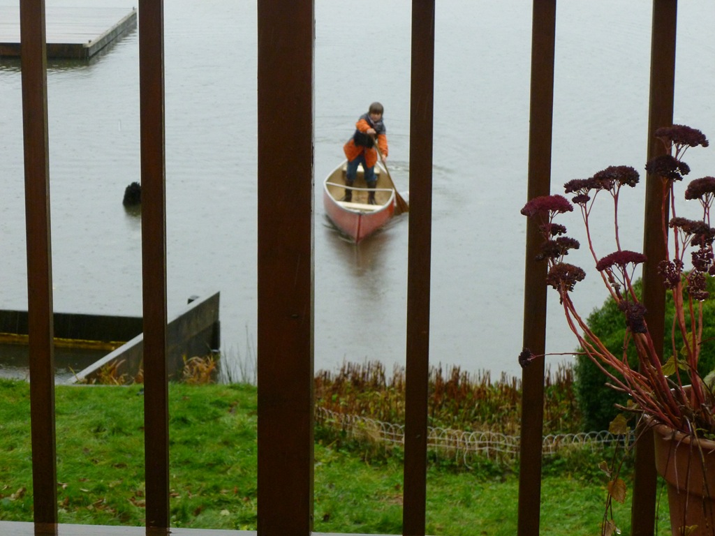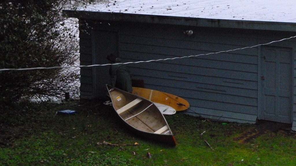 I put the canoe in the time out zone next to Jonβs surf boards.