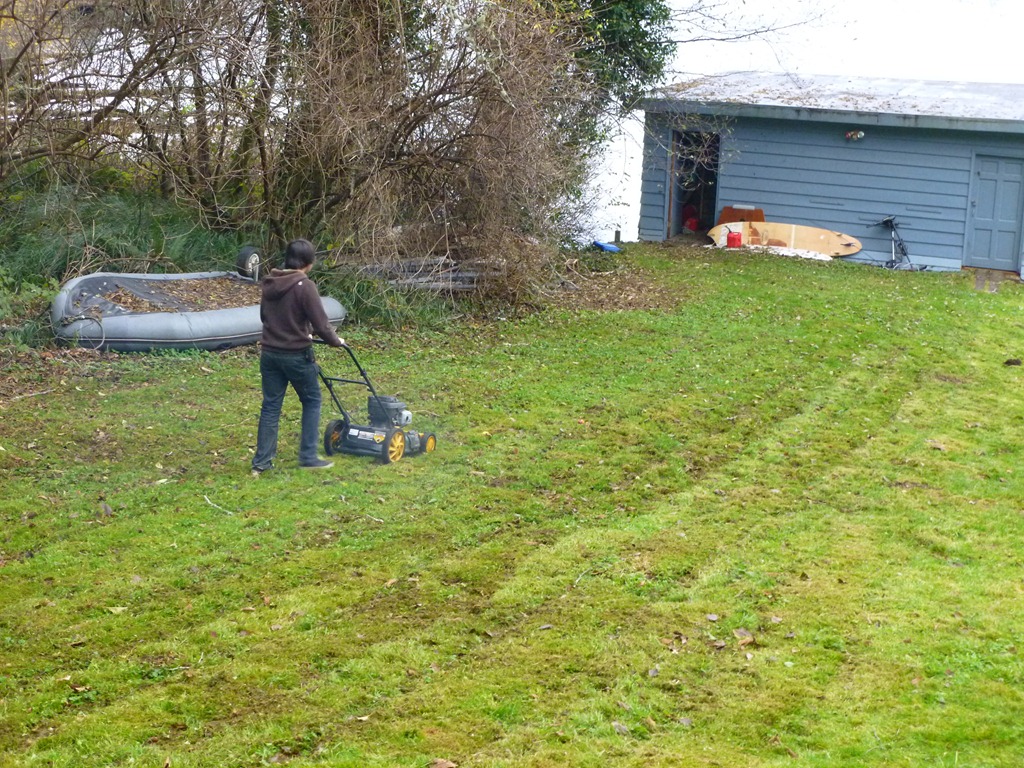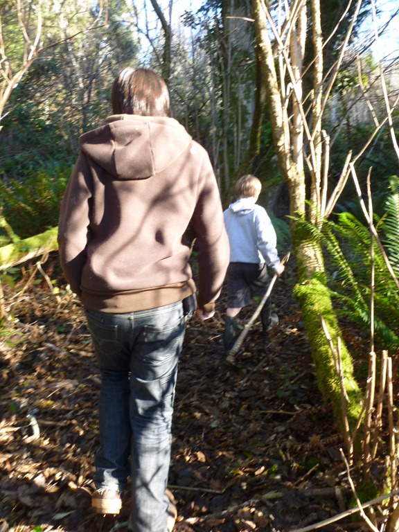 We have studied the buds of trees and bushes in the previous years. It is a most interesting study if you haven’t looked closely. Slice a bud off of a branch, slice it into thin layers. Amazing little creations! This year, we’ve only had about a week of hard rain, so the grass is still needing mowed. In the Pacific Northwest – we have green grass in the winter. It isn’t in a heavy growing season, but it is quite beautiful. For our preparation for winter, we gave it a good last (hopefully) mow, cleaning up the downed limbs from the last storm, mowing all of the leaves from the Red Alders. Jon, the 10 year old, has a thing about mowing. He had his own business this summer, and mows our entire property as well. Nate, shown above, was just putting the lawn mower back after a good clean up, tune up, fuel stabelizer, etc. We had mower problems in the spring, so the boys got quite the education on how to repair them. Awesome.