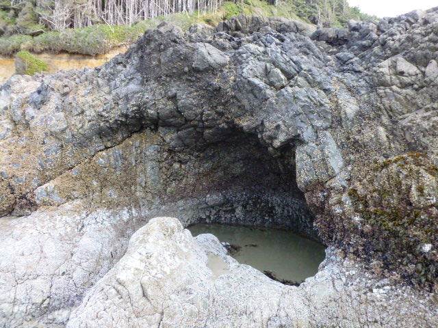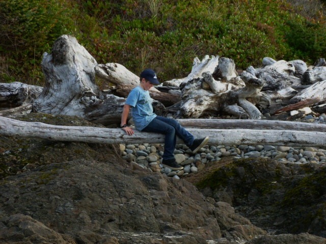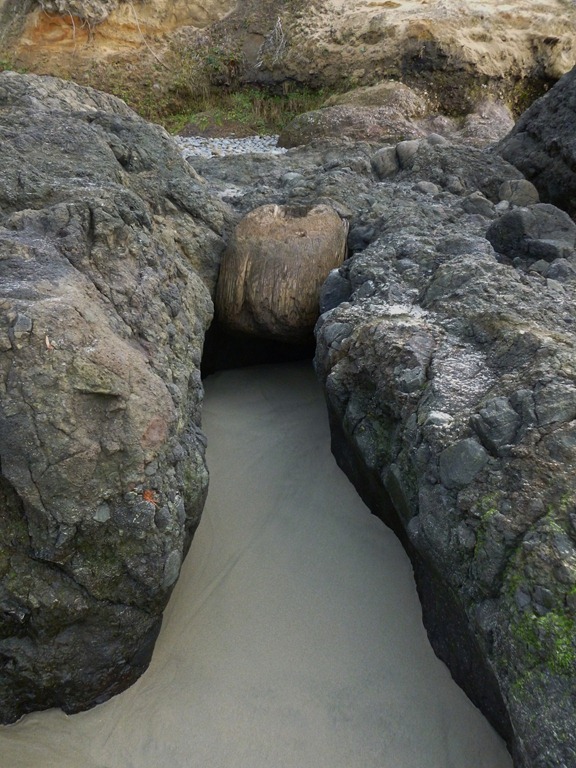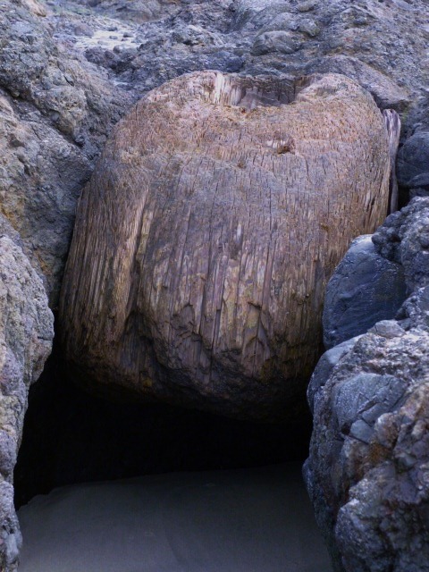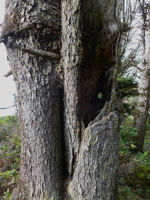 This tree was on the path to the beach south of Yachats today.  It reminded us of our study we are doing about Henry David Thoreau and the movie My Side of the Mountain.  One of the activities is to think of a place to make a one year home out of. This might not be the best spot, as it is right next to a trail, but the tree could be hallowed out!