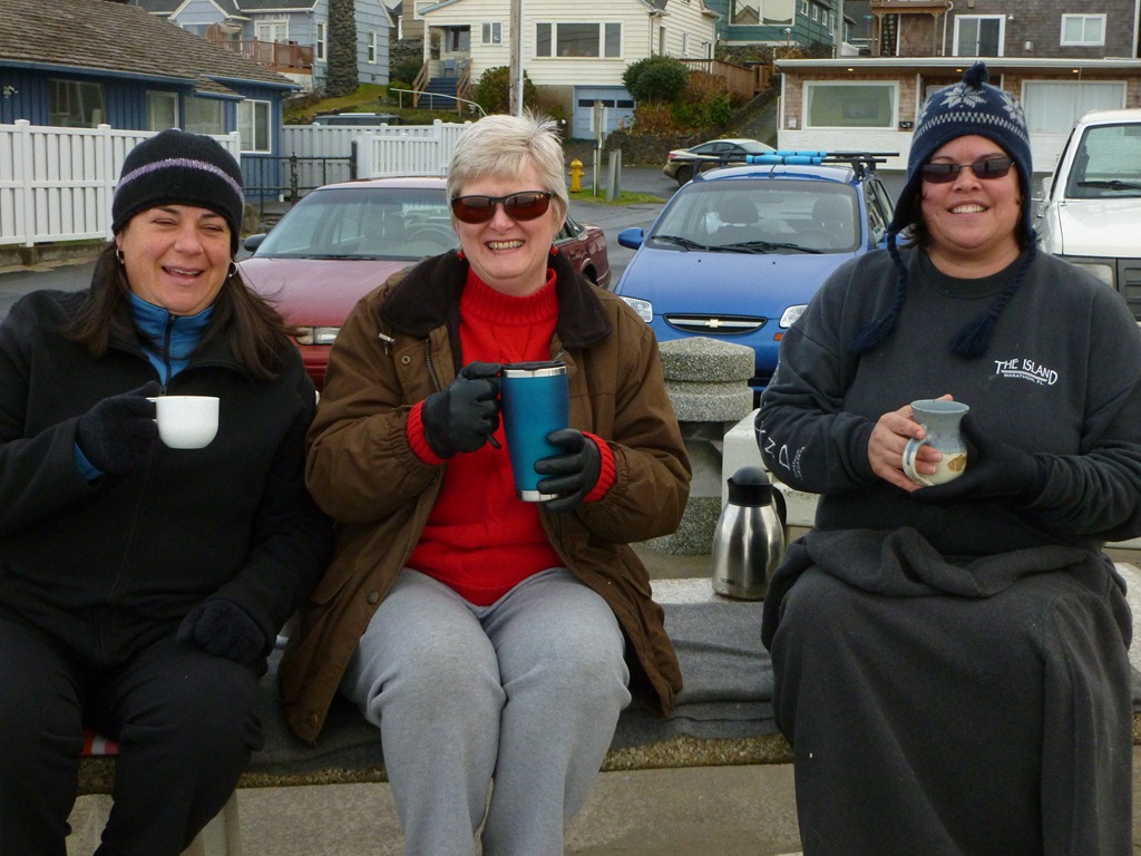Us more seasoned wave watchers came prepared with mochas, gloves, hats, and warm layers. Another friend showed up a bit later, they were at an entrance on the other side, down the street when this shot was taken. Remember, Nature / Ocean Marine Biology / Tides/ Weather learning is sacrifice!