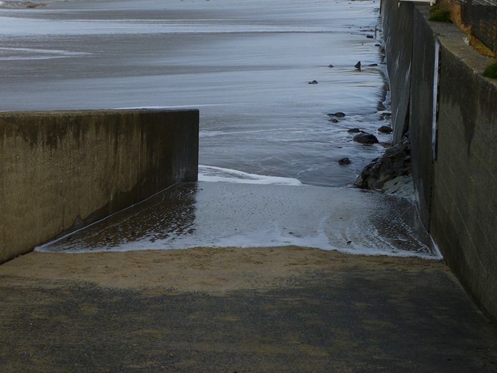 What we’re watching – above photo. To our right, the waves smash the sea wall and move up the ramp area over, and over, and over.