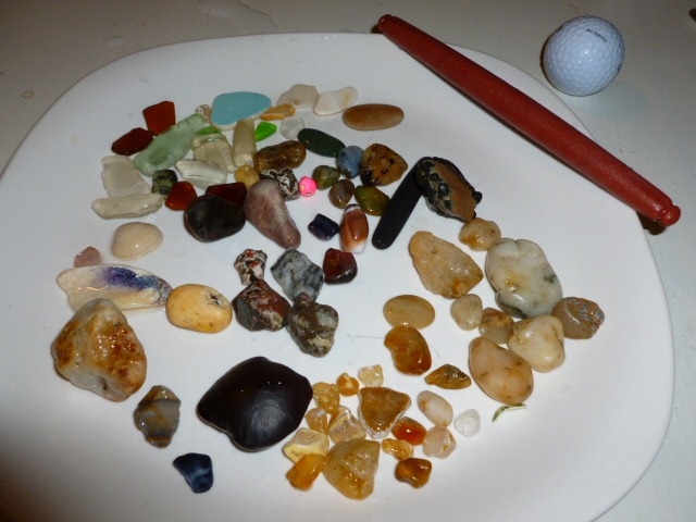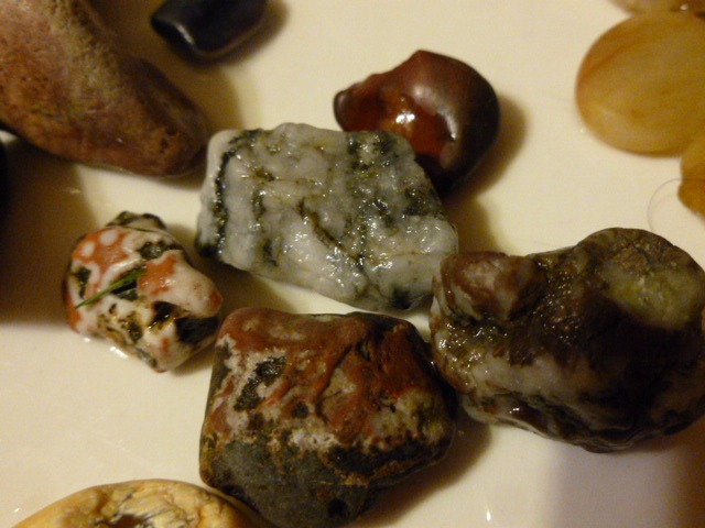 Not picking up near as many agates as in year’s past. These are clear to carnelian, lots of honey. We like pattern, shape, size.