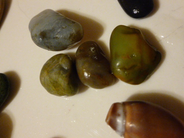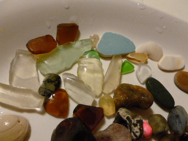 There are some very beautiful rocks and sea glass in your collection. I love that you got them wet for the photos because they are always so much prettier that way. I found a great rock last week on our hike at the river and it is really boring dry on the shelf.