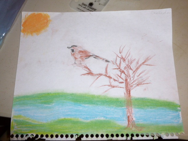 And, the young man, who started with all of the I Can’ts? Who started with the first Chickadee outline at the top of the post? Here’s where he ended up as we spoke. It looks a lot like the view from his window at his home. . . .