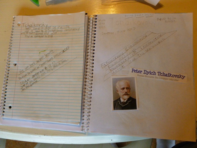 Again, today, we had our first discussion on Tchaikovsky, and they chose the ruled and blank, and again, wrote more and did more than they had the entire last semester of any composer. Hm. So they don’t like printed Notebook Pages?