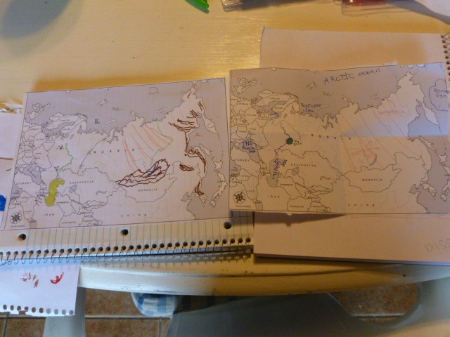 We moved over to Russia, and tagged where Tchaikovsky was born, where he went to school, and where he died. While the maps were out, we looked at The Ultimate Geography and Timeline Guide to see other areas that should be identified. I used a blank map printed from WonderMaps, and also printed a filled out map from WonderMaps so they could find the objects. I even let them use my FriXion Pens . . . so they could make changes. Jon didn’t fill out too many places, Nate quickly found all of the landmarks from the Middle School, so next week we’ll look at the High School areas as well.