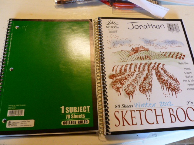 I have them each a ruled notebook, and a new blank sketch book. Nate chose ruled, Jon chose blank.