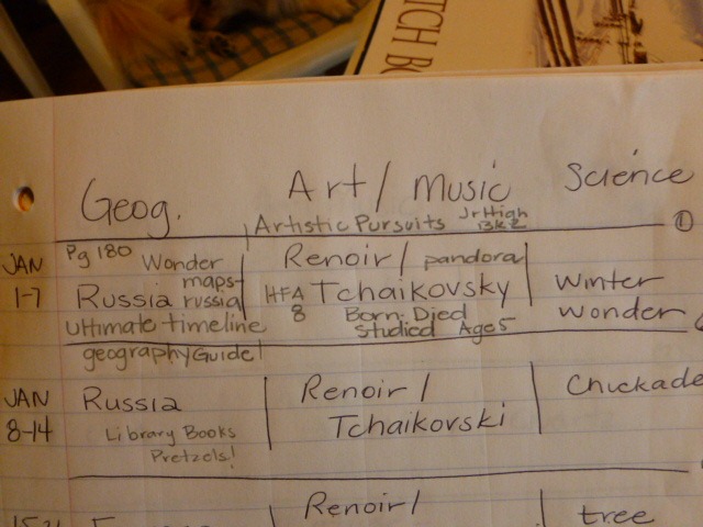 We spent so much time with our composer – that we didn’t get time to talk about Renoir too much. We’ll chat about him next week. We did get to finish the first project from Artistic Pursuits Junior High Book 2. They both earned the complete 25 points from the Rubric.