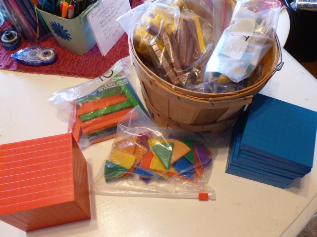Cuisenairee Rods – and Rod Tracks.  So – Maybe I went a little overboard with these when the kids were younger.  I have clickable Rods, Smooth Rods, Wooden Rods, Different Colors, etc.  I just couldn’t pass them up at garage sales and curriculum sales. . . We have several 1 foot tracks and one 3 foot track. It is a nice 100 count rod, great for multiplication.  These handy tools allow a child to easily see that 4 of the #3 rods – equals 12 on the track. Or a line up of 20 individual rods, take a way 3 leaves 17 on the track.  When they were younger, through Miquon, all of their math work was used with rods, no memory.  Now, they have a cemented visual of their sets – addition multiplication.