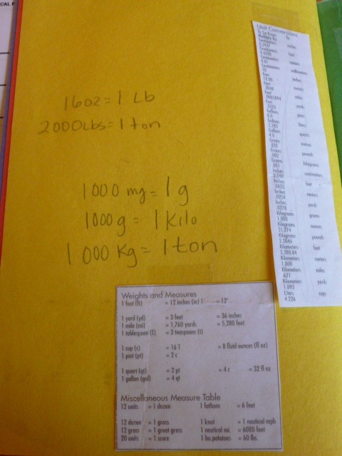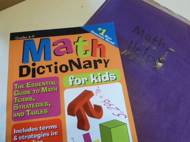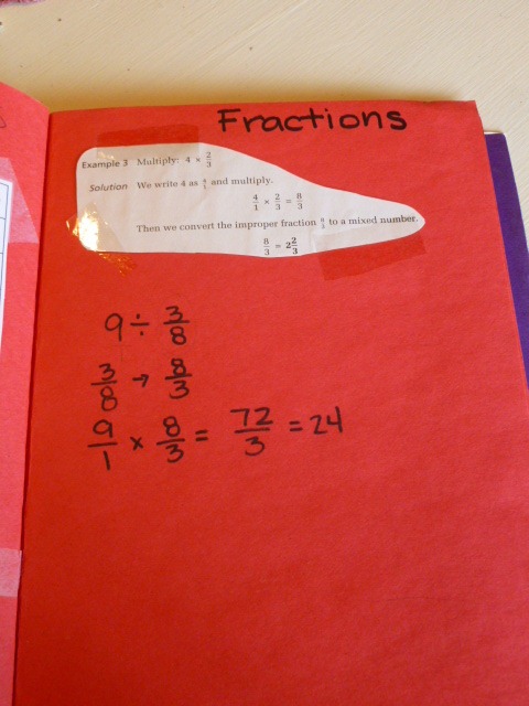 These pages were made over time, as we’d run into something that needed to be “relearned” or remembered – it would get added to the Math Helps Book. Nate still uses this book – but he has moved on to a Math Dictionary: