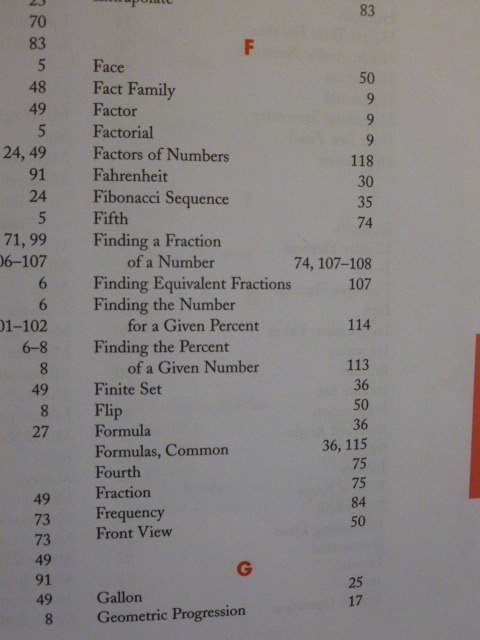 Starting with the index in the back, Nate looks up his question. Usually –it is a vocabulary question, or how the curriculum company phrased the question. Or, if it is from memory – Like – Finding a Percent, a quick glance at that page refreshes the problem solving memory, and he’s off with his work.  This Dictionary is NOT a How to Do Math per say, I’m not sure it would “teach” you anything – but it is REALLY handy to have during class, so mom doesn’t have to be the answer gal. And, since Nate is a visual learner, the more he sees it, instead of hearing it – the more it cements.  Again – Jon – Nope. Hasn’t used this once, never made a Math Helps Book – and just seems to memorize everything quickly.