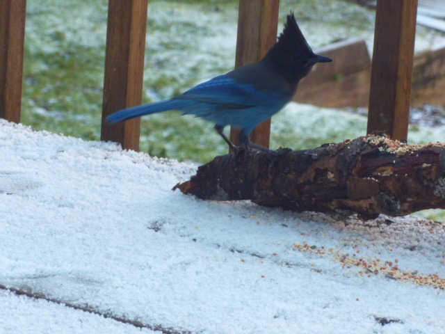 Gorgeous birds (love the log bird feeder!) and a wonderful study. Beautiful snow pictures 🙂