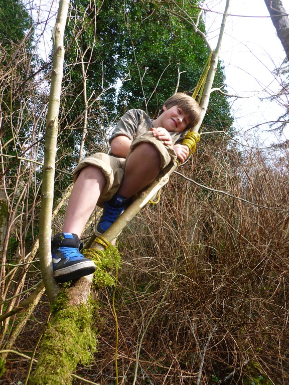 So I leave you with Jon – who created a seat to watch the lake – during the twig study – which made my heart faint, wondering when that branch would break . . . Boys.