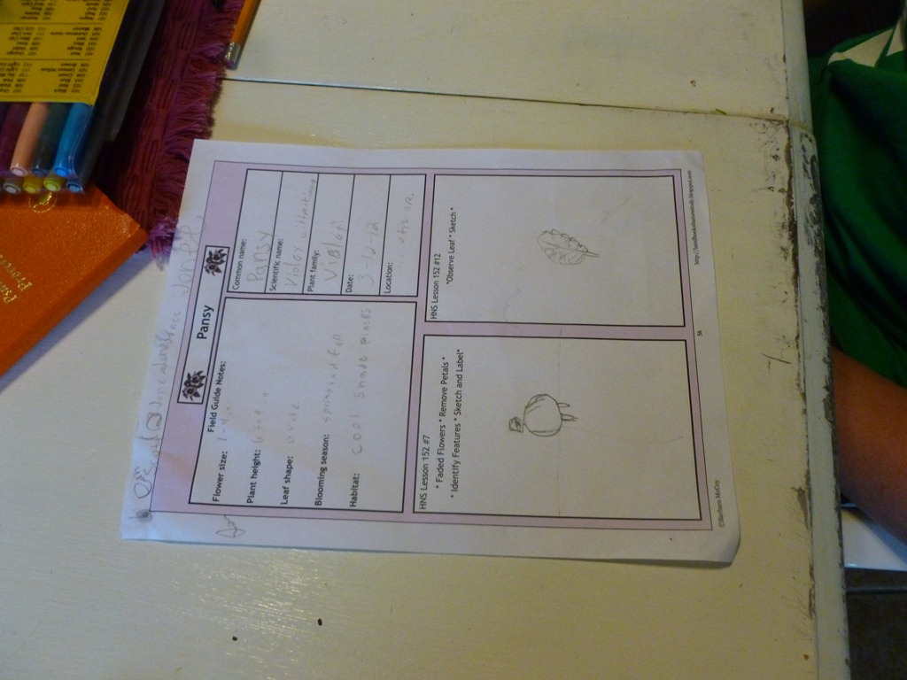 I didn’t have a field guide specific to Pansy – I had quite a few local varieties from the Violet family. So the older boys paired up and did a contest to search out the information on the internet. They did a great job!