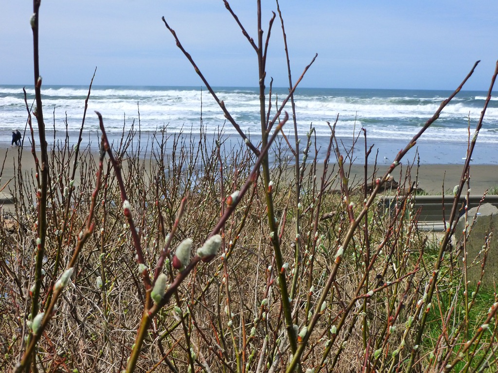The catkins also grow on the shore line, but they were smaller, and a bit beat up from the high winter tides, crazy 60-80 mph winds, and several days of snow. But they are really trying to thrive!