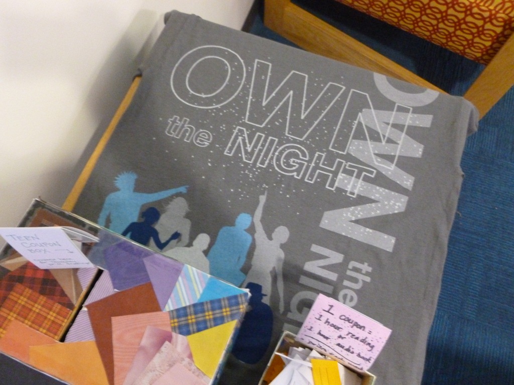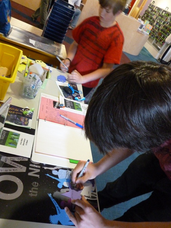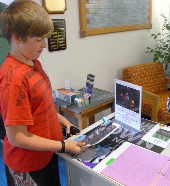 Nate has his group for Teens on Thursday afternoons. They have amazing classes – like Henna, Duct Tape Creations, Ice Cream Parties and the like. Their prizes are donated by local businesses – and Man o Man do they go all out! Meal tickets, coffee, pizza, water bottles, candy, books, – crazy – and LOTS of them. Turn in tickets, and get your name drawn – drawings each week. Volunteer hours at the library count towards tickets as well, and Nate really likes volunteering at the library!