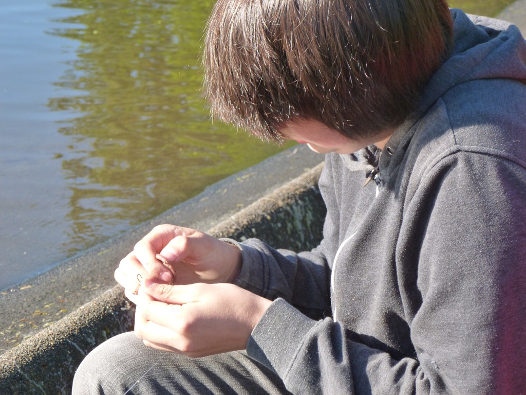 Hungry little buggers. There is a 5 fish limit per child; the trick is to relax, take time between casts, and enjoy the day. Just about each cast will land a fish in moments.