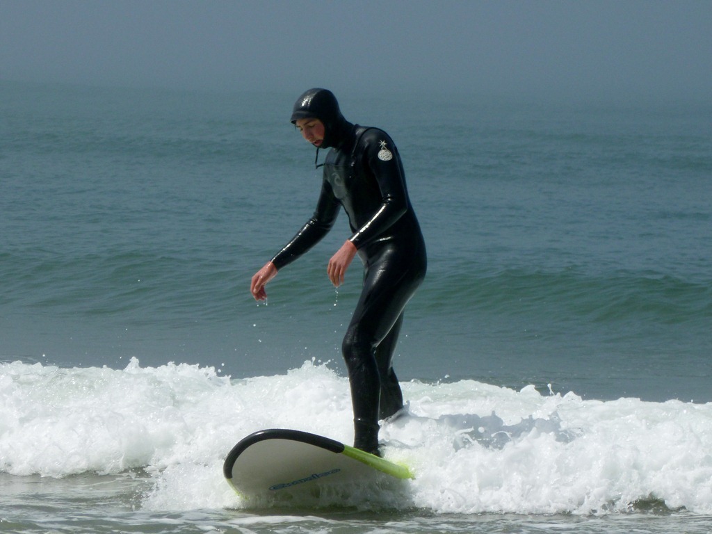 Nate got confident enough to go out into the deep larger waves with his instructor, and caught the wave all the way in. He was pretty stoked to have such an amazing ride!