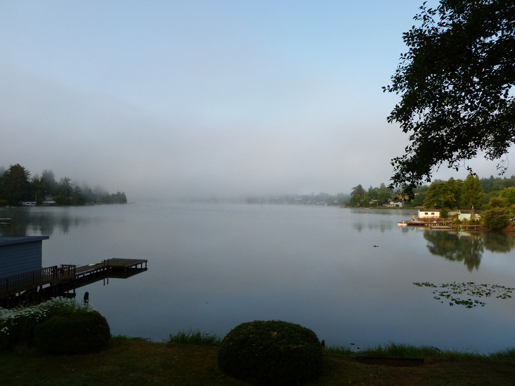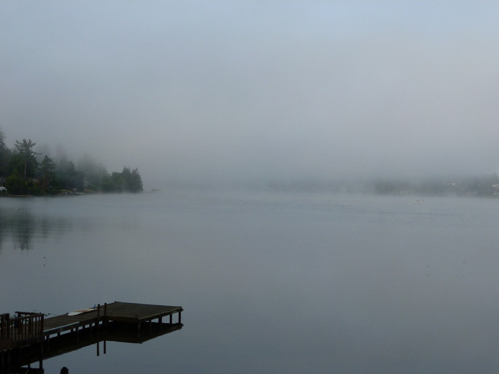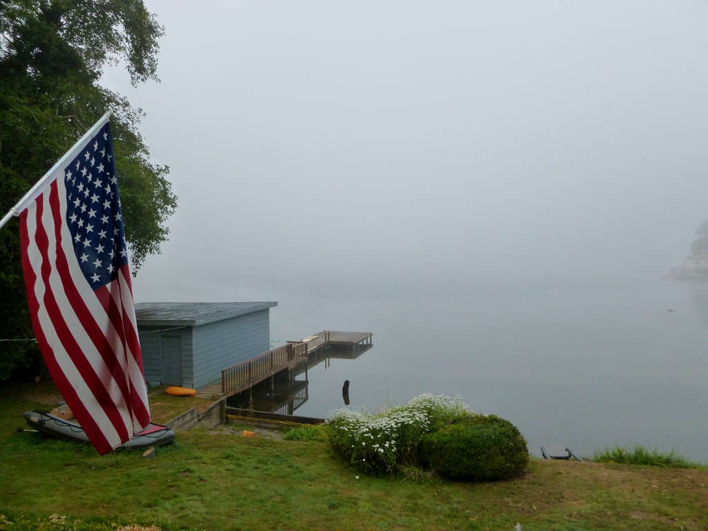 Early Morning Fog around 6. Decided to get up, coffee up, spend some time blessing the house and watering the outside plants – and have coffee on the dock. I’ll let you know when I’m done sprucing up the latrines – you can join me out on the dock with the coffee.