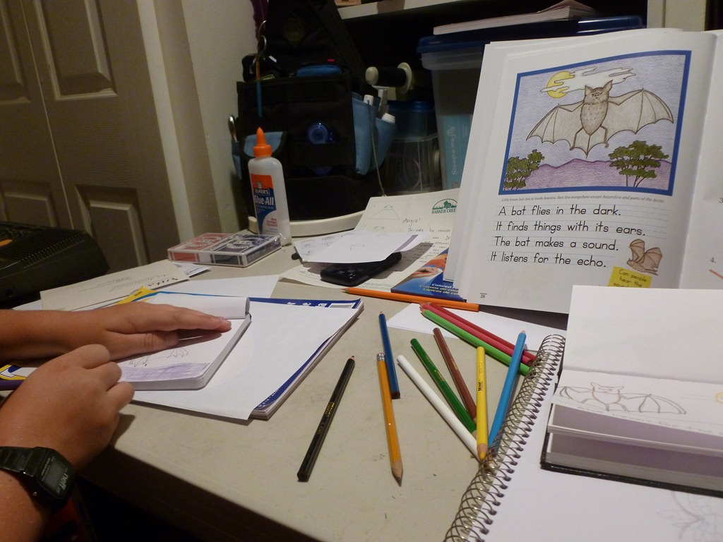 I’d encourage them to color in their drawings with colored pencils and choose at least one sentence sample to copywork onto their page.
