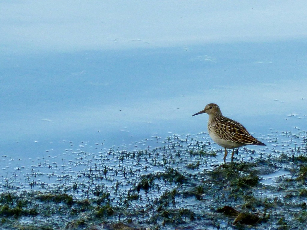 No, that’s not a Merganser – but a cutie little shore bird. Last year we had 2-3, this year we have a flock of 10-20. This morning about 7 were walking around.