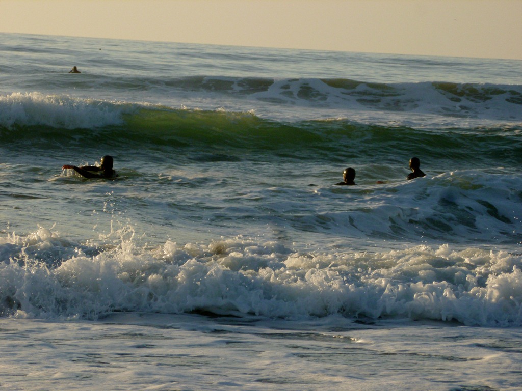 After watching a board break in half and a guy break his wrist on a flying board – the boys thought maybe body surfing would be a good idea.