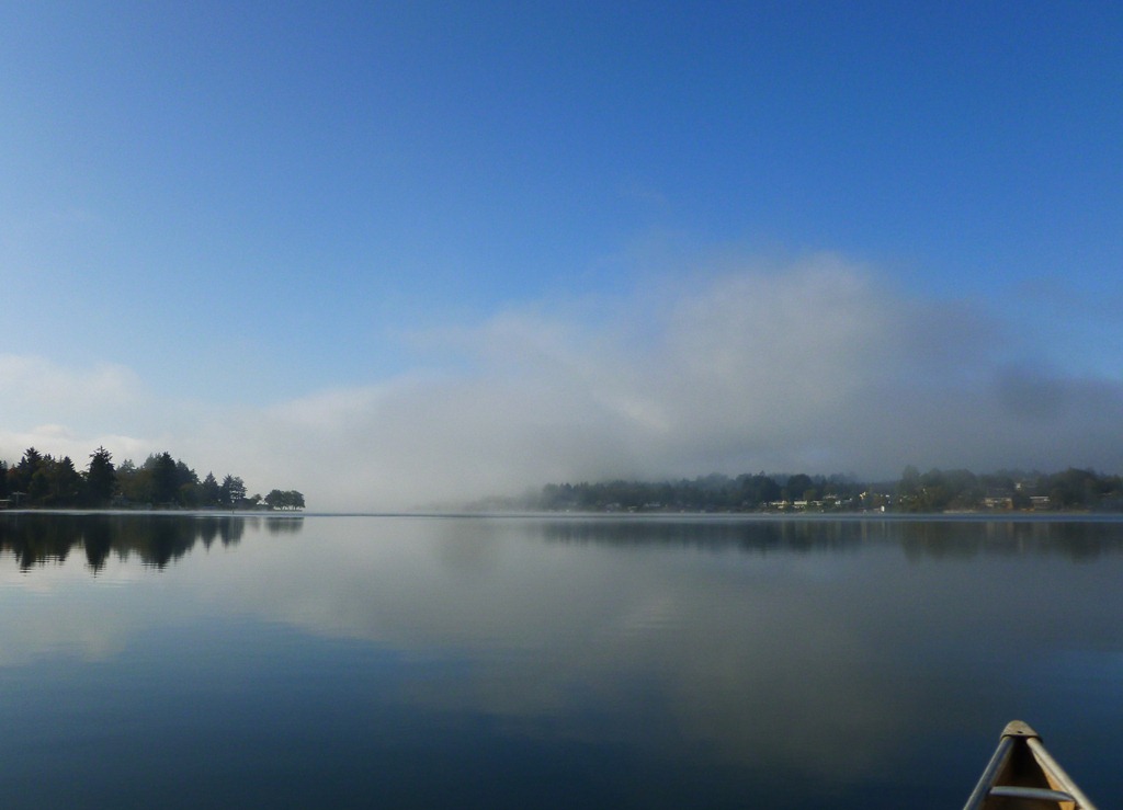 I kept willing the fog to burn off all the way to the west. I would paddle right up to it. It felt like the kind of fog that was thick cotton. Like you could cut it with scissors. Thick White Blanket. So I turned around.