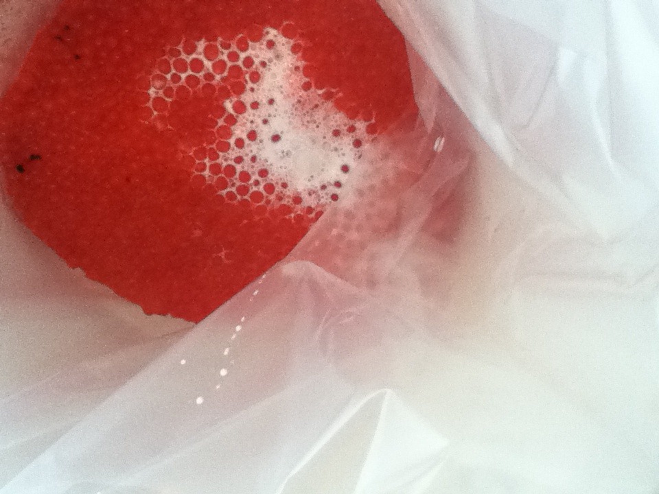75 ounces of fertilized eggs are put into a tray filled with water, after a squirt of idodine. We were told that they are instantly starting to grow as soon as the fertilized eggs touch the water.