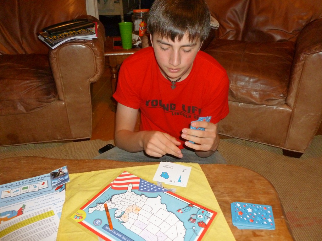 Surprise – Nate won every game. He could see the numbers the patterns. He was lucky and got the Vote for Me cards that let you move around more – but he still won each game. Anyone need a political campaign worker – he’s your guy.