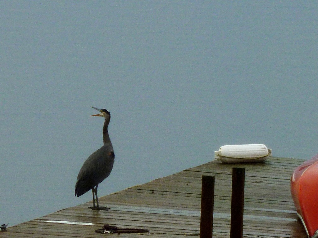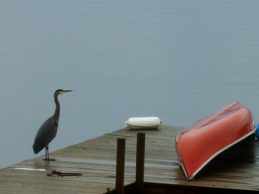 The canoe got moved – the boy needed the space to jump off the dock tonight. Hope the Heron is happy in the morning . . ..