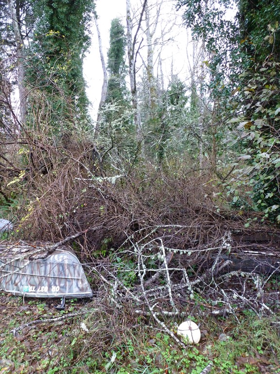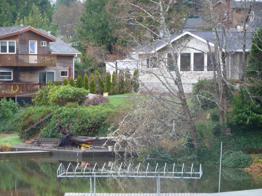 Another new Red Alder tree down next door to the south. Sort of sad, as the birds like to go over in this corner and there is about 20 feet between this tree and the yard. It will be a nice safe hangout – outside of my site. Look at the photo below, there are two dead trees that have been there, the new one has the Ivy wrapped around it. People who SUP or Swim really don’t like deadheads in the lake – I scratched my leg pretty deep on one this summer swimming when my board flipped. OUCH!