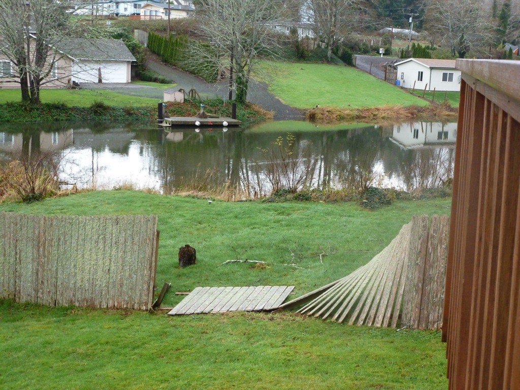 The fence between our neighbor and our back yard. Most of the fence is down up and down the yard. I can get better photos of the canal this way – but the fence is nice.