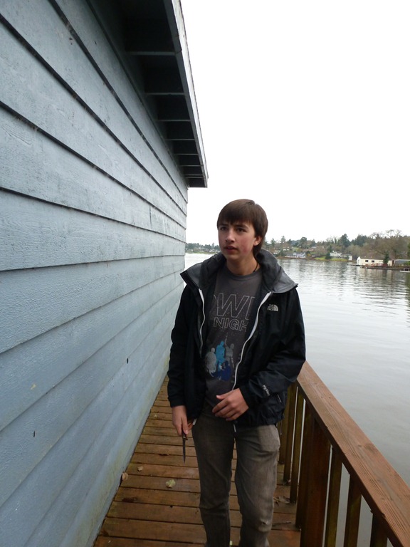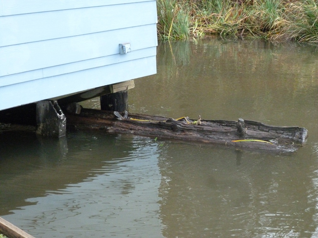 A log that drifted under our boat house. This is an ocean rock on this log. Too cold to put on the wet suit and get it, we’ll investigate later.