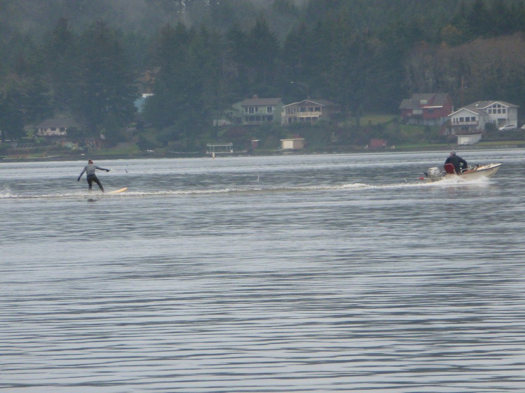 Someone wakeboarding behind a fishing boat? What? Oh – see that splash behind her? It’s a leash. That’s a surf board – a tow surfer on the lake. I think she is one of our Surf Team members, but I didn’t see her up close. Pretty sure it is her. You Go Girl!