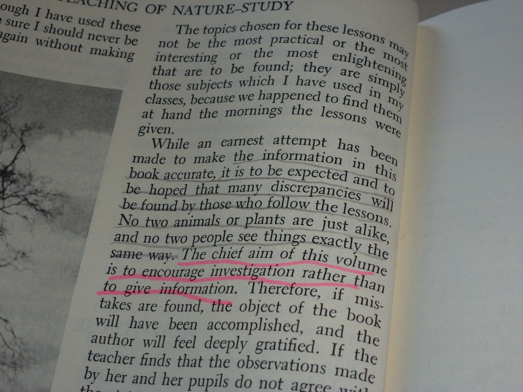 This week, the instruction to the teacher is to read a few spots in the Handbook of Nature Study book – to the teacher.