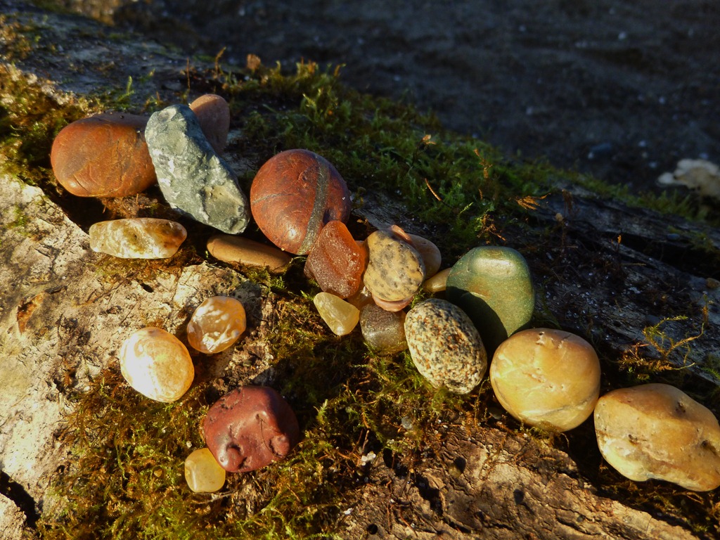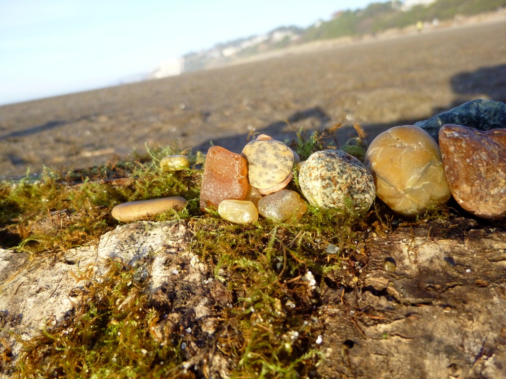 So I was going to go look for a rock that had moss on it. But I went to the beach instead. Low tide. Deep long thick rock beds. After collecting a hoodie’s front pocket’s worth – I walked over to sit and chat with a friend on a log. And – The idea hit me.