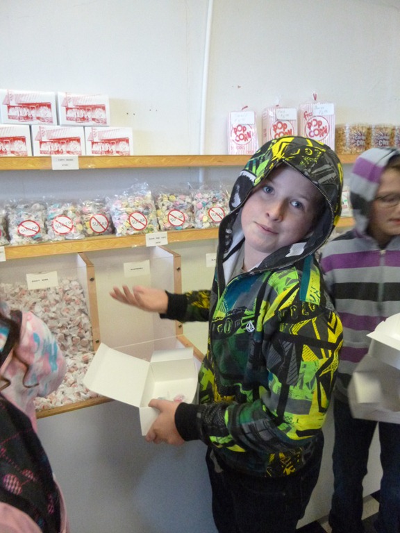 One thing I didn’t know – and always wondered – is Shelf Life.  How do they rotate the candy? At Ainslee’s, they never have taffy more than 7 days old in the bins. They ship world wide – and want it to be the freshest possible on delivery. They say that it will never go ‘bad’ as in bad for you, but it looses its best fresh wonderfulness after about 3 months.  Not sure how they did a test like that, our boxes from yesterday are almost devoured completely!