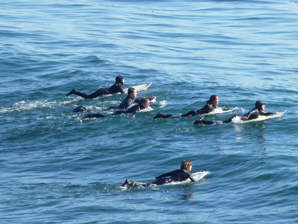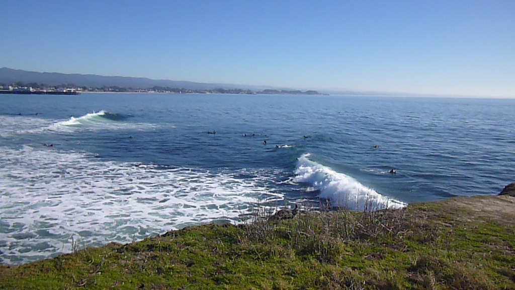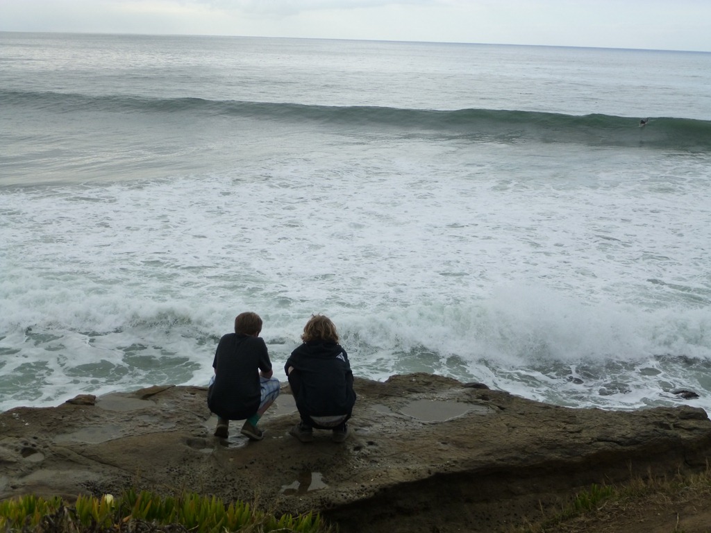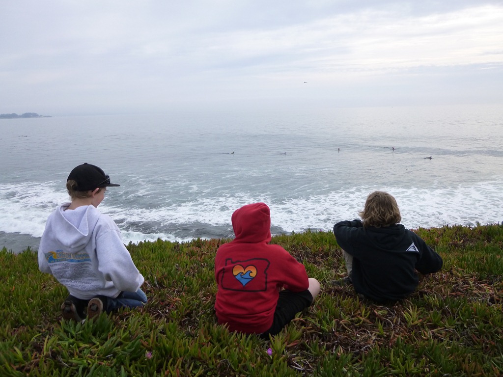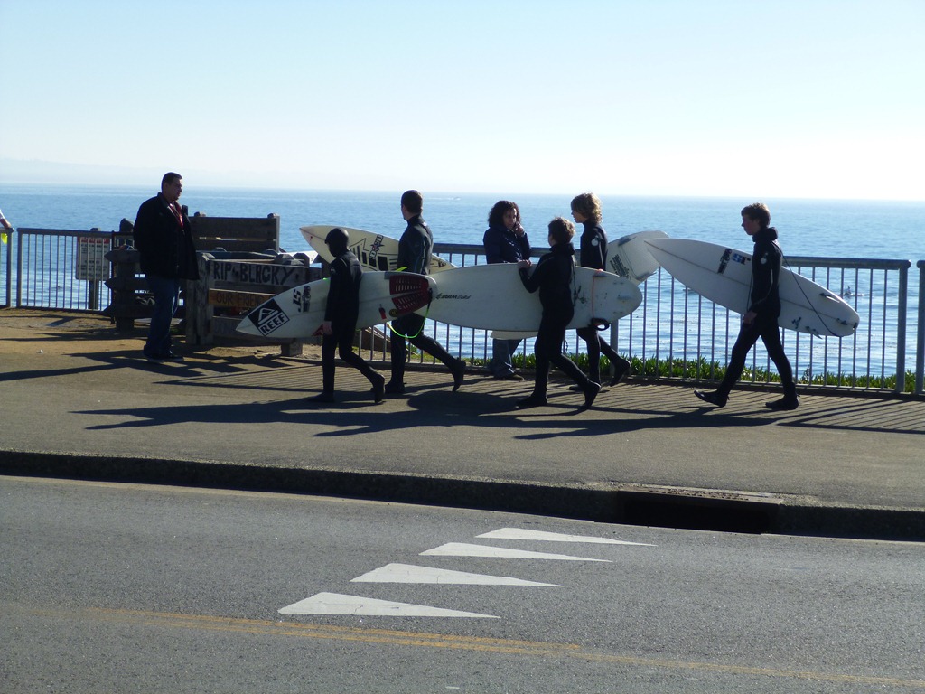brother and sister in law, a completely last minute decision. They too live right on the water so lunch was fun! We continued on to San Francisco, looping a bit in the dark for the kids to see the bridge and a bit of Lombard Street. Then it was all systems go to Santa Cruz. We headed straight out to The Lane – and listened to the surf, trying to see the swells come in. On to the Motel checking in a little after 10 p.m. 4 Surf Team members and 3 coaches in the van, 16 hours of surfing videos, and tons of laughter and the occasional cheese bit fight.