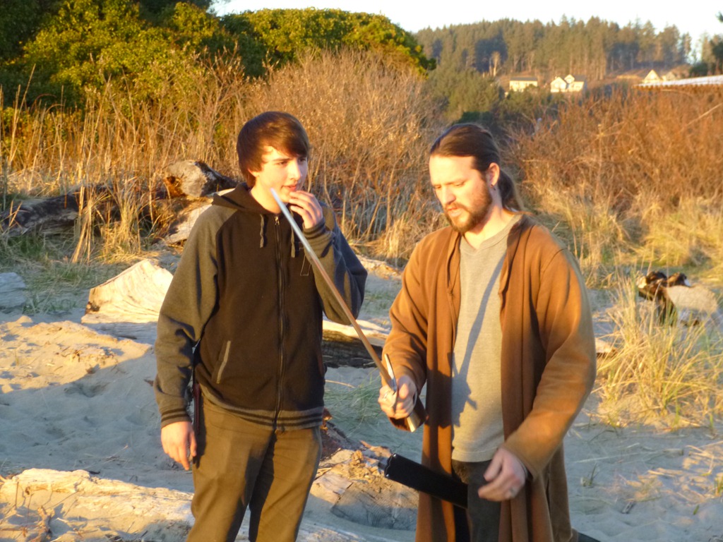 Nate shows Fox Jaxon Designs his new sword. He likes the sword but not the sheath. Fox Jaxon I going to hook him up with a custom job for his birthday. He makes some incredible items. I think they are working a deal on a few clothing pieces as well. Cool.